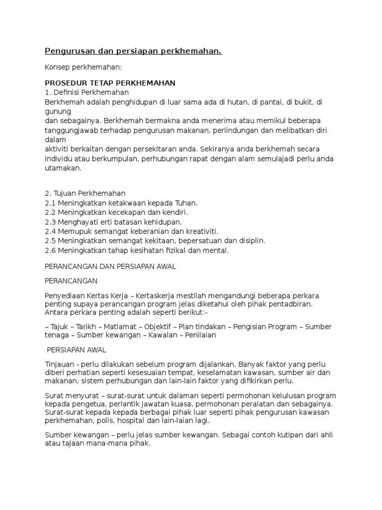 Pengurusan Dan Persiapan Perkhemahan Pdf