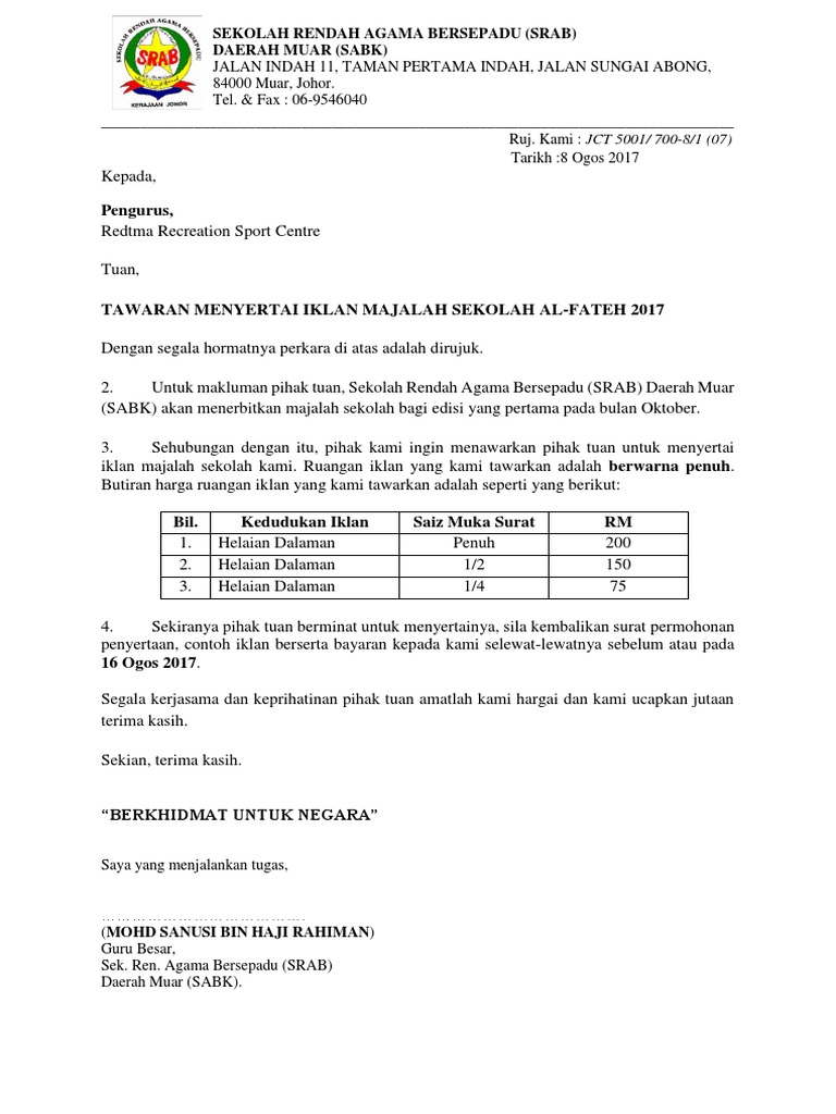 Contoh Surat Rasmi Kenaikan Kos Iklan Fb