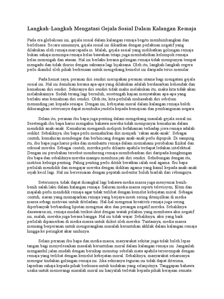 Langkah Mengatasi Gejala Sosial Dalam Kalangan Remaja Pdf