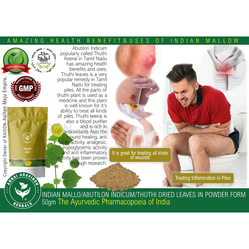 Indian Mallo Abutilon Indicum Thuthi Dried Leaves In Powder Form 50gm The Ayurvedic Pharmacopoeia Of India Shopee Singapore