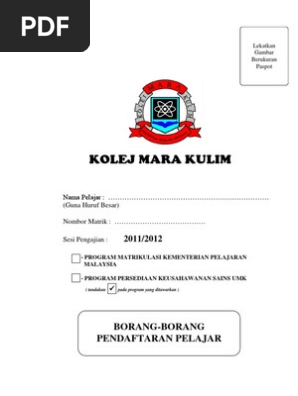 Kolej Mara Kulim Jalan Junjong Kulim Kedah Buku Panduan Pendaftaran Pelajar Sesi 2017 2018 Selamat Datang Ke Kmkulim Pdf Free Download