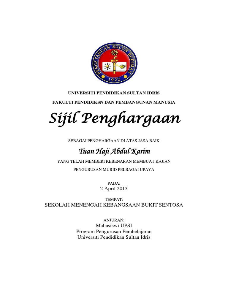 Contoh Sijil Penghargaan Dan Boleh Diedit