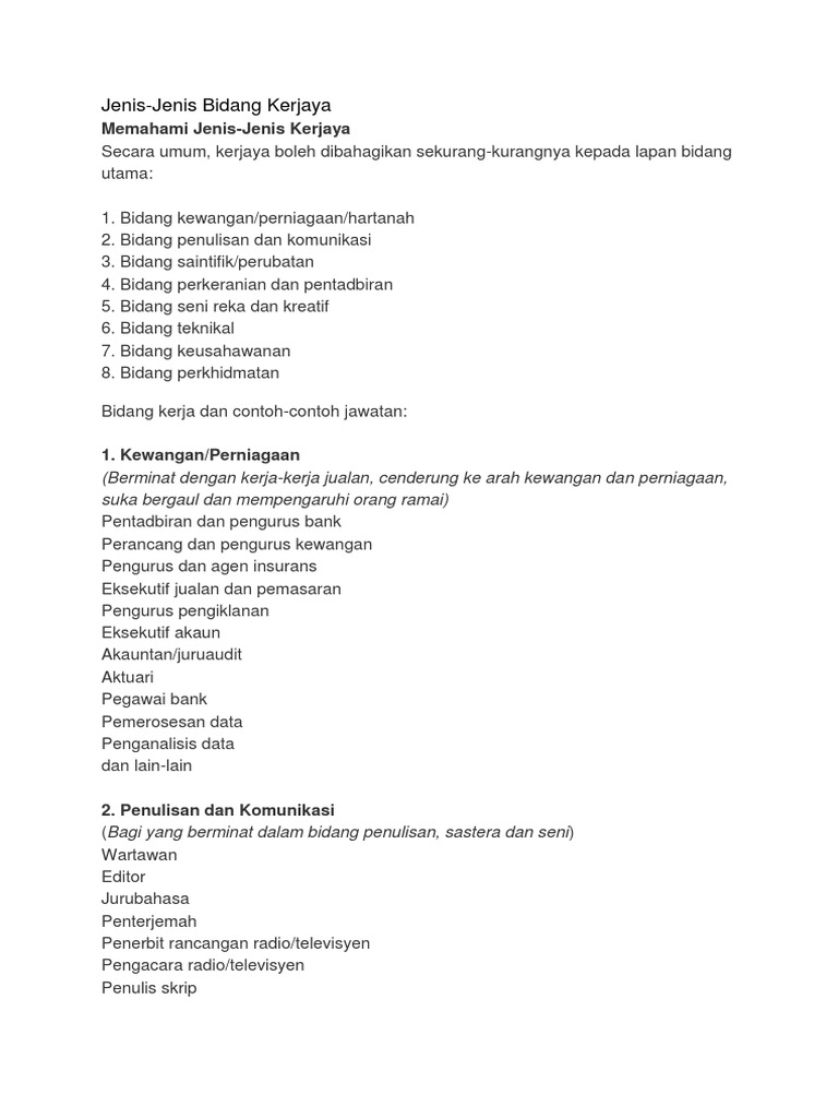 Jenis Jenis Bidang Krjaya Pdf