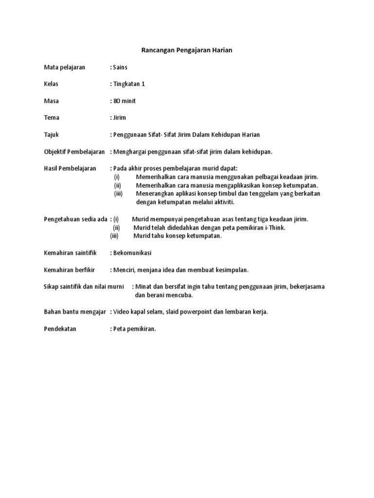 Rancangan Pengajaran Harian Sains Tahun 1 Pdf