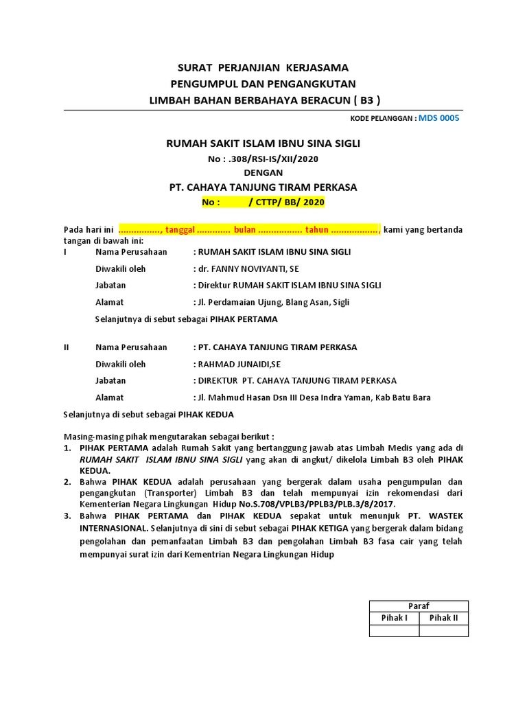 Surat Perjanjian Kerjasama Pengumpul Dan Pengangkutan Limbah Bahan Berbahaya Beracun B3 Pdf